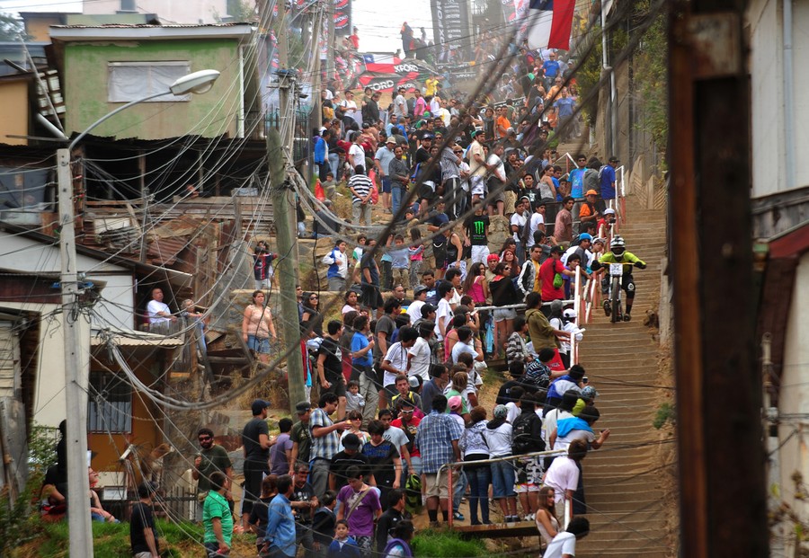 Read moreJF Godin (@jfgodin), "downhill mountain biking", part 2: Pro downhill riders fly down steep staircases during the 9th version of Valparaiso urban downhill race in Chile, on February 20, 2011. #