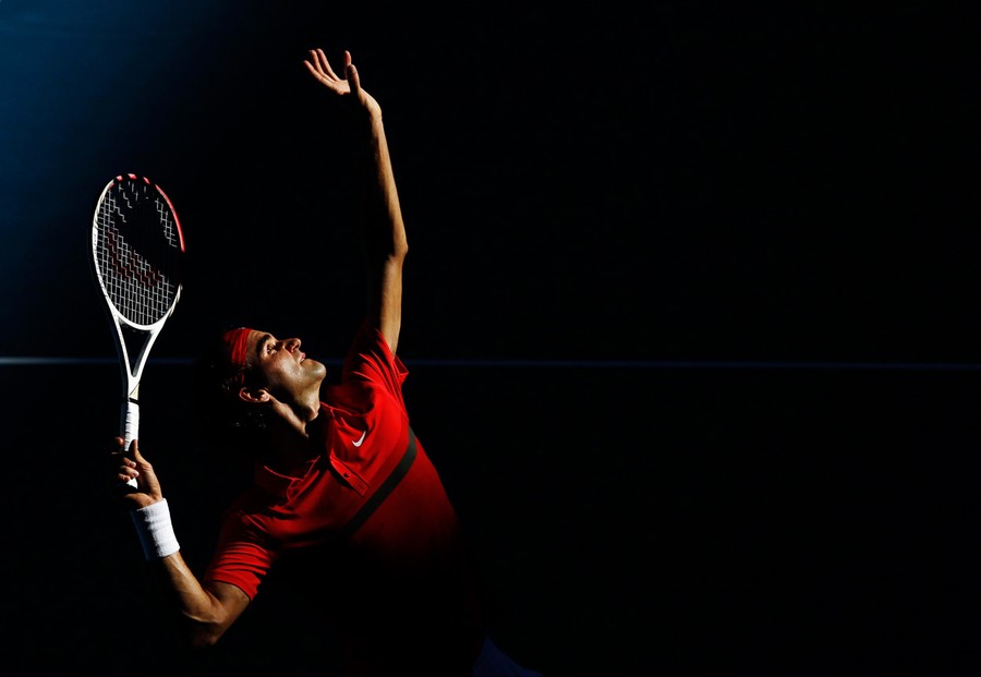 Read moreVasile Zaremba (@vasilezaremba) said "My subject is Roger Federer." Roger Federer of Switzerland serves to Juan Martin Del Potro of Argentina during their men's singles quarter-finals match at the Australian Open tennis tournament in Melbourne, on January 24, 2012. #