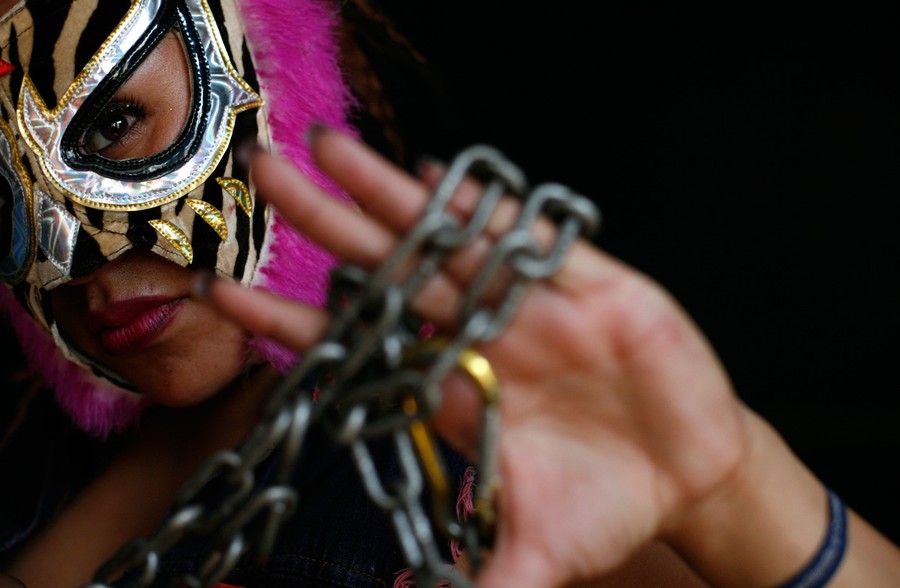 Read moreRandy (@randallfm) asked for photos "of mexican wrestling, Lucha libre." Mexican lucha libre wrestler Selva Salvaje (Spanish for Wild Jungle) poses for a photo at a gymnasium in Mexico City, on September 27, 2011. Salvaje, a mother of two, has been wrestling for more than seven years. She is married to a wrestler. The majority of Mexican female lucha libre wrestlers are housewives and part-time wrestlers. #