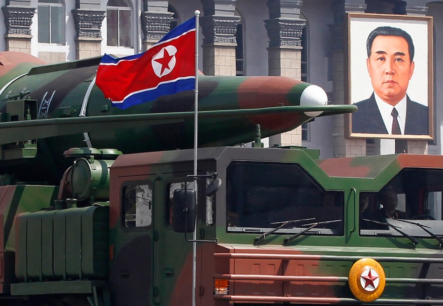 Read moreJ.R. Levesque (@Enernoj) asked to see "the North Korean rocket that is presumed to be a fake." A pair of German missile experts claim this particular missile is a fake, pointing to ripples and imperfections on the surface "as if a thin metal sheet was fixed onto a simple inner frame." The rocket is carried by a military vehicle during a military parade to celebrate the centenary of the birth of Kim Il-sung in Pyongyang, North Korea, on April 15, 2012. #