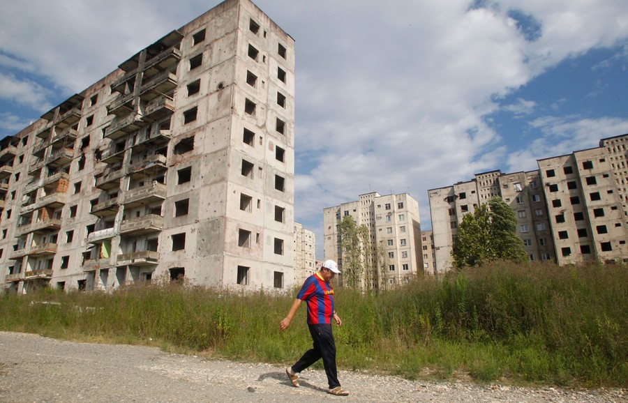 Read more(Part 2 of 2 request from Patricia Valerio, @patriciavalerio) Abkhazia is just down the road (100km south) from Sochi, Russia, home to the 2014 Winter Olympics, and continued unrest in the area has led to preparations for strong security around the games. Here, an Abkhazian man walks past war-damaged apartment buildings in Sukhumi, the capital of the Georgian breakaway region of Abkhazia, on August 25, 2011. #