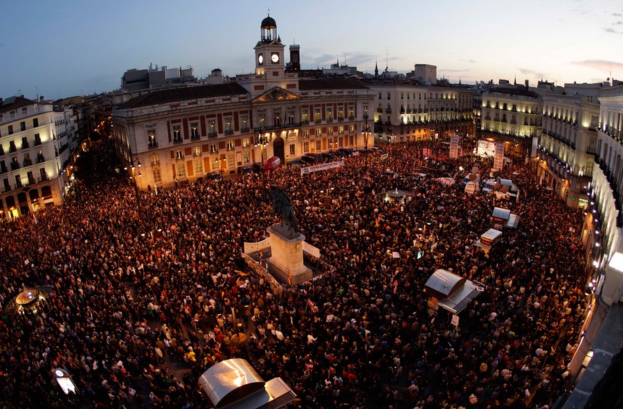 Read moreSunrise At The Sky (@SunriseAtTheSky): "Next may is the anniversary of 15M movement, probably you can find good pictures from Puerta del Sol, Madrid in Spain." Thousands of people protest against recent labor reforms at Puerta del Sol square in Madrid, Spain, Thursday, March 29, 2012 during a general strike day. Spanish unions angry over economic reforms are waging a general strike, challenging a conservative government not yet 100 days old and joining other troubled European workers in venting their frustration on the street. #