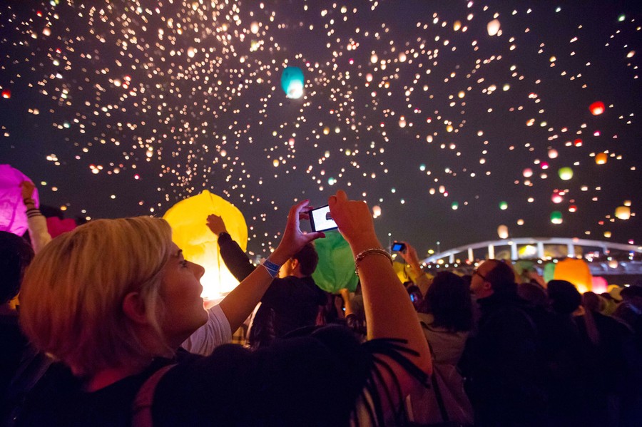 Around the world, people are using light to paint, perform, honor, work, and play. In villages and cities alike, lanterns and candles are used to celebrate and commemorate events. In Berlin, famous landmarks are currently being illuminated for the annual Festival of Lights. In Florida, a private spacecraft climbed into orbit atop a pillar of fire, and around the globe, dozens of buildings were bathed in pink for breast cancer awareness month. Gathered here is a handful of recent images of humans pushing back the dark and lighting up the night.