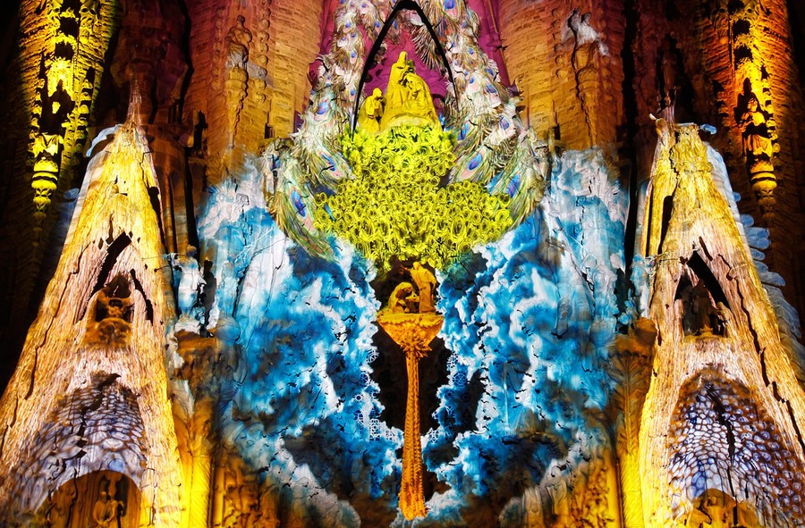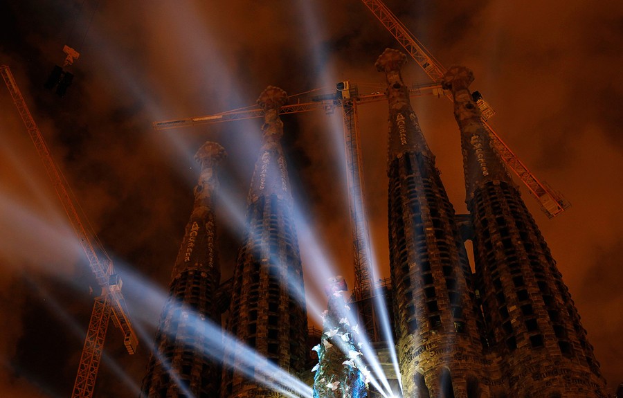 Read moreThe Basilica Sagrada Familia is illuminated during the "Montreal Signe Ode a la Vie" light show by Canadian company Moment Factory as part of the Merce Festival in Barcelona, Spain, on September 21, 2012. #