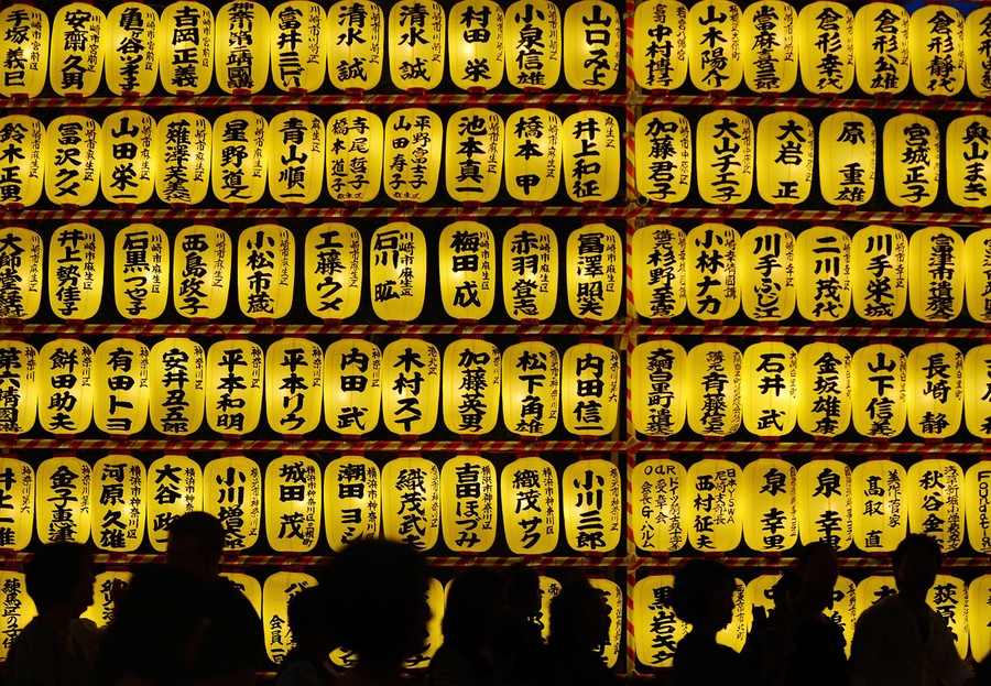 Read morePeople walk in front of rows of lit lanterns during the Mitama Matsuri festival at the Yasukuni Shrine in Tokyo, on July 15, 2012. Some 30,000 lanterns were illuminated in the precinct in memory of victims of war. #