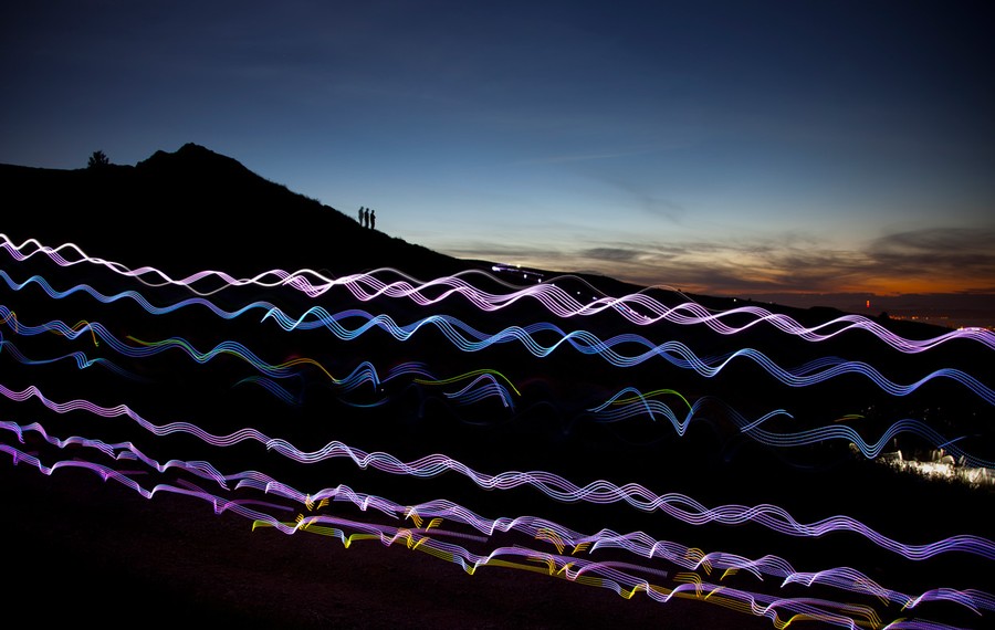 Read moreRunners and walkers wearing light emitting suits and holding light sticks make their way up Arthur's Seat as part of a dress rehearsal of a mass participation public art piece called "Speed of Light" on August 8, 2012 in Edinburgh, Scotland. The piece which forms part of the annual Edinburgh Festival is set to illuminate the iconic natural monument as hundreds of people make their way up and around, creating streaks of light as they go. #