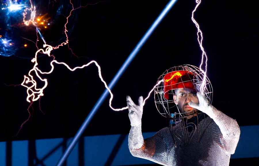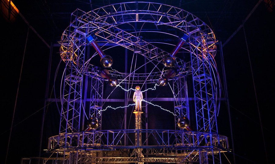 Read moreMagician David Blaine channels bolts of electricity from various Tesla coils charged with one million volts of electricity during a stunt on Pier 54 in New York, on October 5, 2012. #