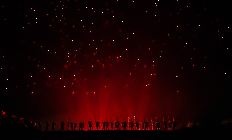 Read moreActors perform a theatrical re-enactment of the Red Army and the beginning of the Long March in Jinggangshan, Jiangxi province, China, on September 20, 2012. Jinggangshan is where former Chinese leader Mao Zedong's career as a revolutionary began to take off. In 1927, Mao and several communist leaders fled with a few thousands to the hills of Jinggangshan, hounded and outnumbered by Nationalist forces. #