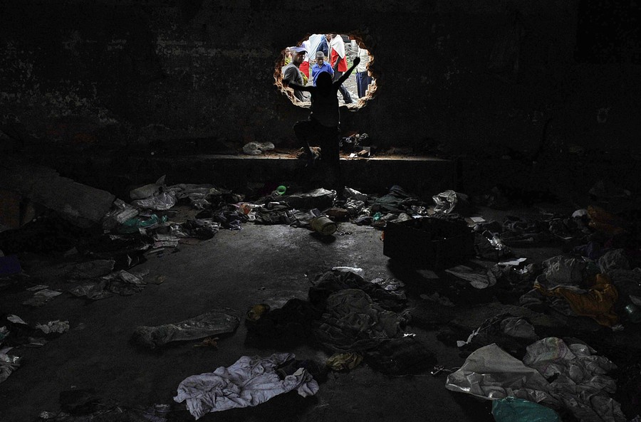 Read moreA young boy jumps through a hole as others peer through the wall of a cell at Muzenze Prison in Goma, on November 21, 2012. Almost all inmates of Goma's main prison managed to break out after prison overseers abandoned their positions to flee from advancing M23 rebels two days ago. #