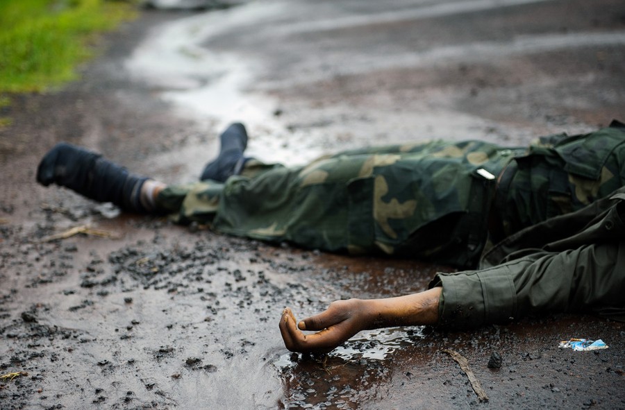 Read moreThe body of a dead Congolese army soldier lies in the road between Goma and Kibati, in eastern Democratic Republic of the Congo, on November 18, 2012. Government soldiers were fleeing the eastern DR Congo city of Goma in large numbers today as rebels advanced to the gates of the regional capital, a UN source said. Rebels took control of Goma two days later. #