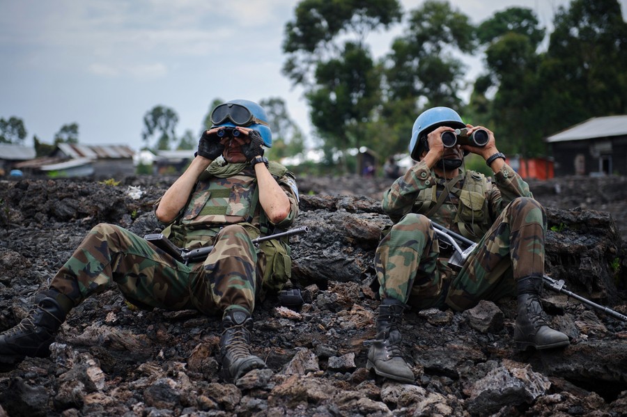 Read moreUruguayan United Nations peacekeepers watch M23 rebel positions on the outskirts of Goma, DR Congo, on November 18, 2012. Government soldiers fled Goma in large numbers as rebels advanced to the gates of the regional capital. #