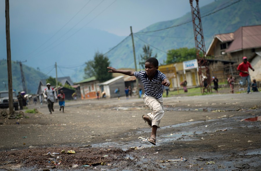 Read moreA Congolese boy runs through the town of Sake, 26km from Goma, as gunfire erupted at the edge of the town in the east of DR Congo, on November 22, 2012. Thousands fled the town today as gunfire and mortar explosions rocked the town, which was soon under M23 rebel control. #
