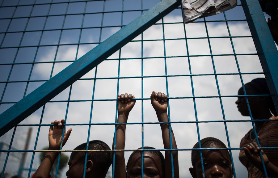 Read moreDisplaced Congolese children stand against the gate of a religious organization on the outskirts of Goma, on November 25, 2012. Over half a million people have been displaced in eastern Congo since the outbreak of the M23 rebellion. #