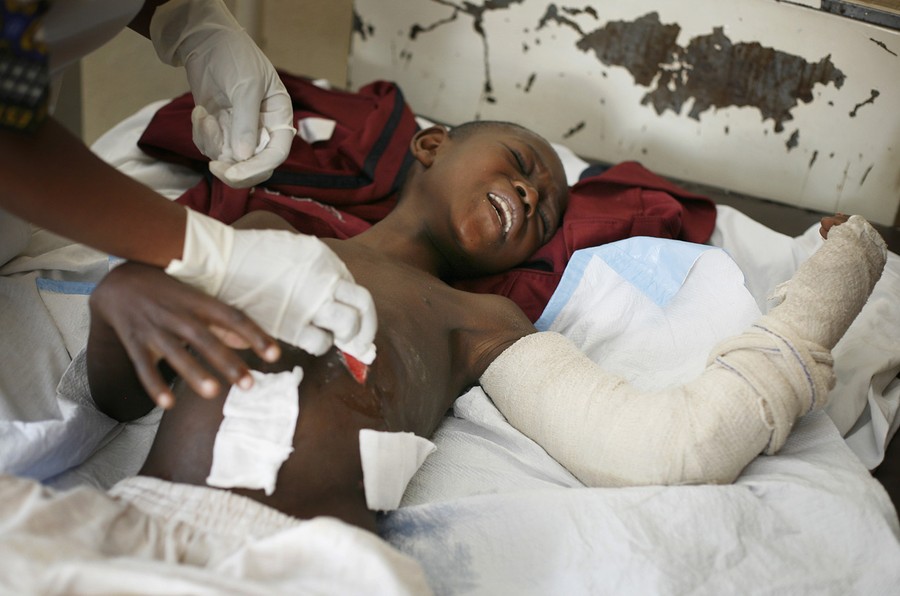 Read morePromess Bitibo, 12, who was injured by bullet wounds to the abdomen on November 19 2012, grimaces as he is dressed by a nurse at the Heal Africa hospital in Goma, on November 26, 2012. #