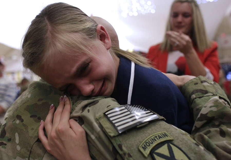 Read moreTrinity, 10, hugs her father, U.S. Army Staff Sgt. Mitchell Liming, during an arrival ceremony for soldiers returning from a deployment in Afghanistan, at Fort Carson, Colorado, on November 21, 2012. #