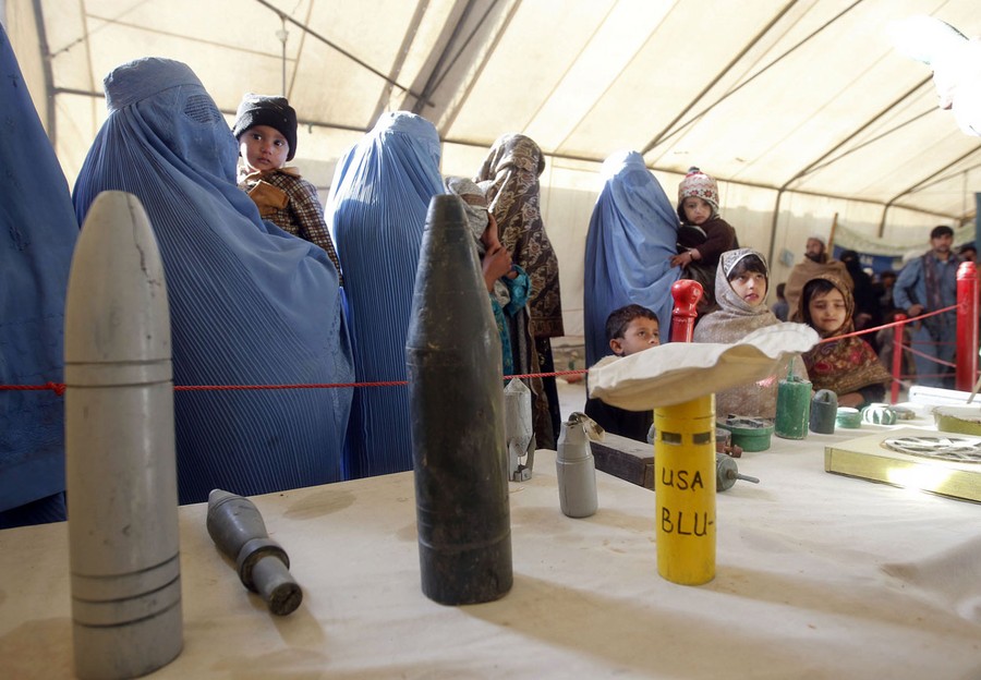 Read moreAfghan refugees family returning from Pakistan look at sample explosives and mines during an awareness program at the United Nations High Commissioner for Refugees (UNHCR) registration center in Mommand Dara district in Jalalabad province, on November 20, 2012. #