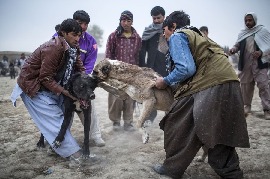 Read moreAfghan men pull apart two fighting mastiffs during the weekly dog fights in Kabul, on November 16, 2012. Dog fighting was banned under the Taliban for being un-Islamic but it is now common practice. #