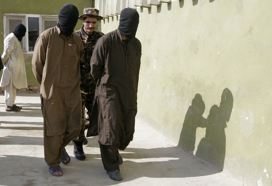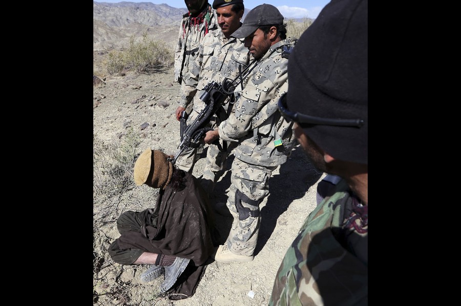 Read moreAn Afghan border policeman points his rifle at a detained suspected Taliban fighter as he poses for pictures for a colleague near the town of Walli Was in Paktika province, on November 4, 2012. #