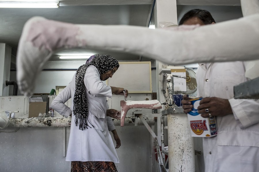 Read moreAn orthopedic technician works to make a mold of an artificial limb at the International Committee of the Red Cross (ICRC), orthopedic center in Kabul, on November 20, 2012. The ICRC rehabilitation center works to educate and rehabilitate land-mine victims, and those with limb related deformities, back into society and employment offering micro-credit financing, home schooling and vocational training to patients. The clinic itself is unique in that all of the workers are handicapped. The ICRC center in Kabul has registered over 57,000 patients and 114,000 countrywide in all of their centers since its inception 25 years ago. #
