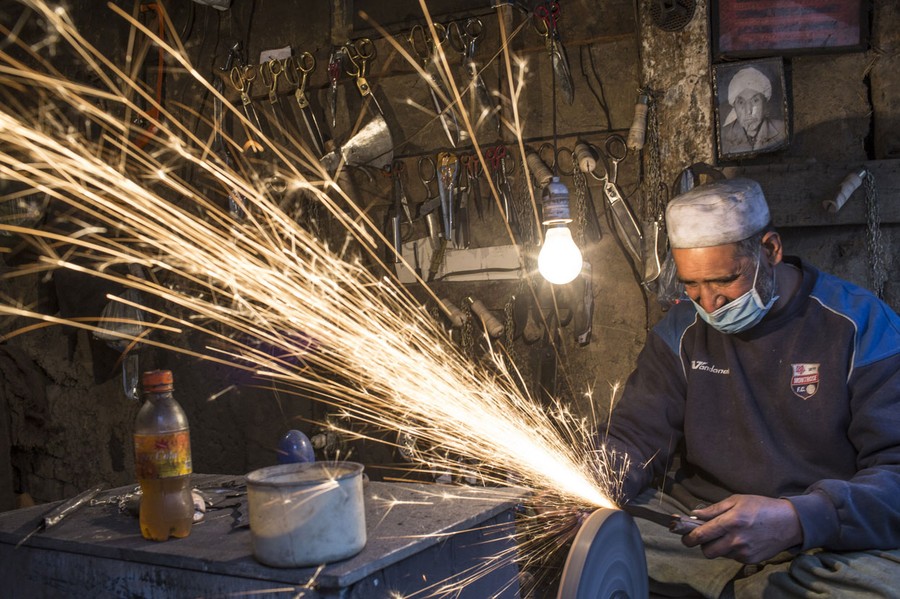 Read moreAn Afghan knife maker shapes out a knife at his store at the Ka Faroshi Bird Market in the Old City in Kabul, on November 15, 2012. The Ka Faroshi Bird Market is a narrow lane-way tucked away behind the Pul-e Khishti Mosque that is lined with stalls selling birds by the dozen. #