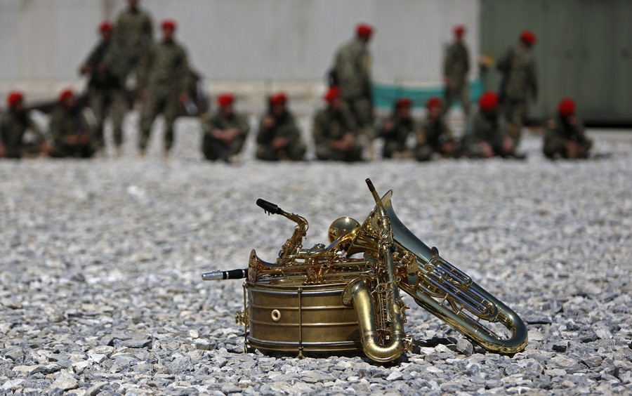 Read moreMusical instruments lie on the ground in front of members of the military during a ceremony handing over the Bagram prison to Afghan authorities, at the U.S. airbase in Bagram, north of Kabul, on March 25, 2013. #