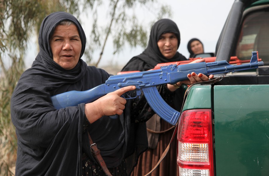 Read moreWomen in the Afghan Uniform Police (AUP) take cover while practicing a high-risk traffic stop during their training on Combat Outpost Matun Hill, Khost province, on February 25, 2013. The day's training taught the AUP how to safely conduct a traffic stop and search a vehicle. #