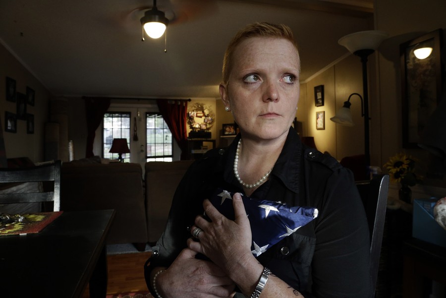 Read moreTracy Dice Johnson holds a flag from a "widow's box" that platoon mates of her wife prepared during a service they had for their fallen comrade, on March 20, 2013, in Raeford, North Carolina. When her wife was killed in Afghanistan last year, the North Carolina National Guardswoman heard about it from her sister-in-law. Although Sgt. Donna Johnson had listed Dice as her next-of-kin, Army casualty officers informed Johnson's mother of her death first because of a federal law that prohibits the U.S. government from recognizing same-sex unions. #