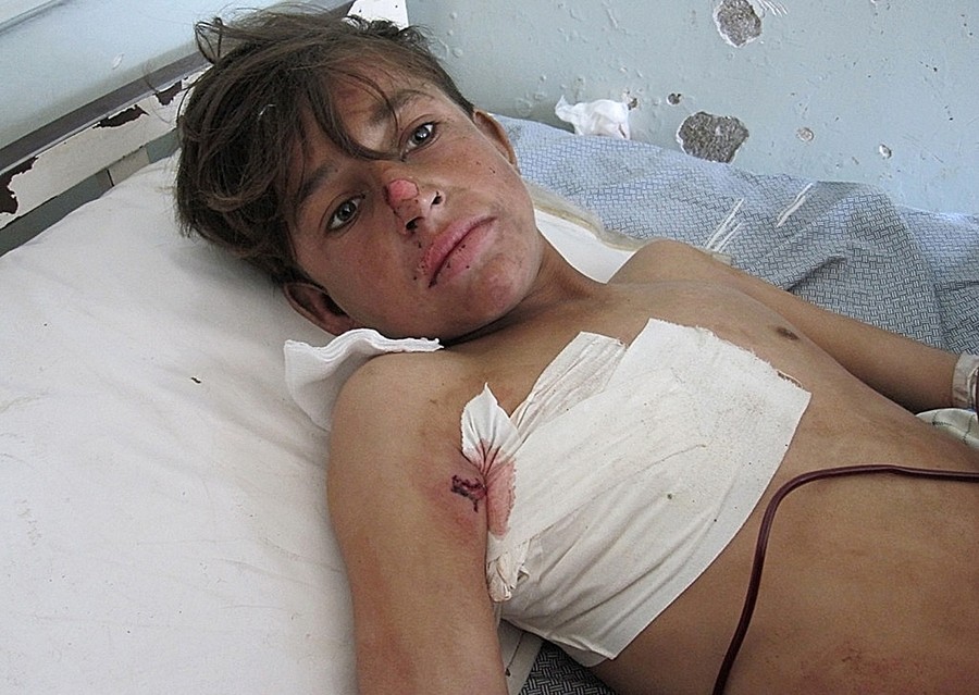 Read moreA wounded Afghan boy receives treatment at a hospital in Kunar province on February 13, 2013. A NATO air strike killed 10 civilians, mostly women and children, in a raid on a Taliban hideout in a remote region of eastern Afghanistan, local officials said. "Five children, four women and a man were killed in the raid," Kunar provincial governor, Sayed Fazulullah Wahidi, told AFP. #