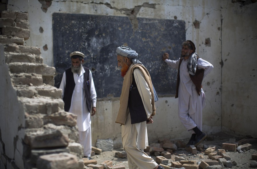 Read moreAfghan men walk through the debris of their destroyed school in the village of Budyali, Nangarhar province, on March 19, 2013. Taliban militants attacked the nearby district headquarters in July 2011, then took refuge in the school. The Afghan National Army requested help from coalition forces, who responded with drones, fighter jets and rockets, leaving the school destroyed, according to village elders. #