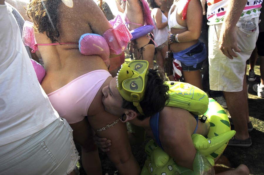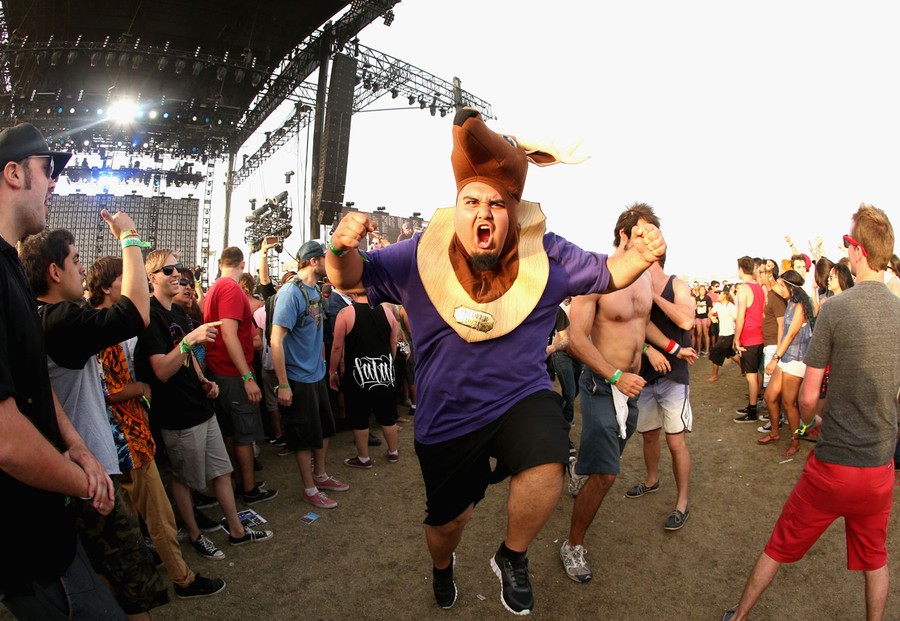 Read moreA concert-goer wearing a costume kisses his friend during Coachella 2013, on April 12, 2013. #