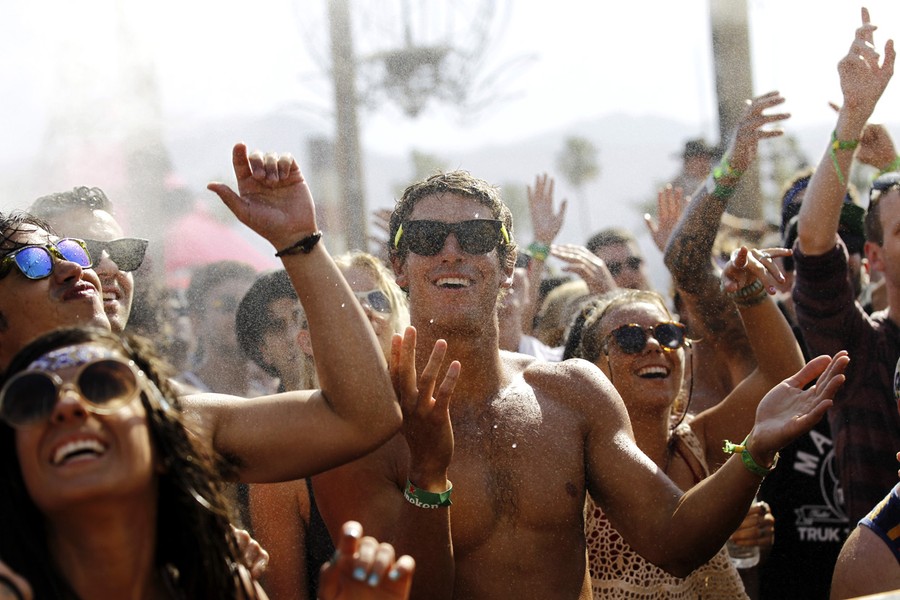 Read moreConcert-goers are sprayed with water to cool off during the Coachella Music Festival in Indio, California, on April 12, 2013. #