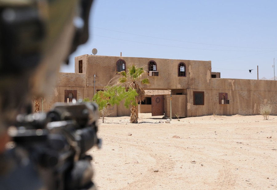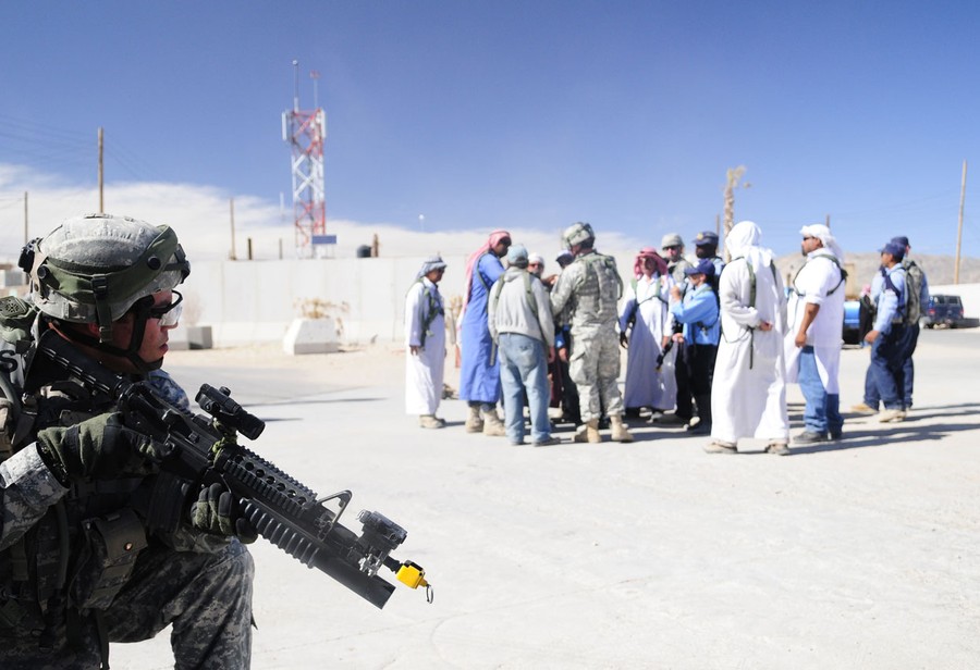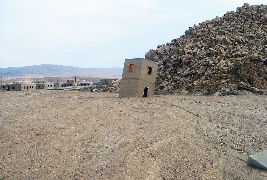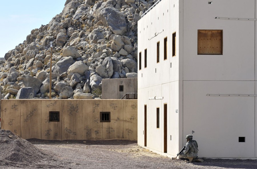 Afghanistan can be found just 120 miles northeast of Los Angeles, California -- well, an approximation of Afghanistan at least. In the Mojave Desert, the U.S. Army's National Training Center at Fort Irwin is home to several mock villages built to create realistic training environments for troops due to be deployed overseas. Two of the largest "villages" have been used to represent several fictional towns in Iraq and Afghanistan, with names such as Medina Wasl, Ertebat Shar, Razish, and Medina Jabal. Units undergo training scenarios, exposing them to a realistic version of their "worst day ever," surrounded by military and civilian actors portraying Afghan locals, police, and insurgents. Simulations include the detonation of IEDs, rocket attacks, suicide bombings, as well as practice with crowd control, interaction with locals, and providing aid. The mock combat includes exposure to realistic horrific injuries, with real-life amputees portraying victims who have had limbs blown off, complete with gory prosthetics and fake blood. The photos here show a few of these villages during several different training missions over the past few years.