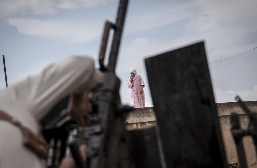 Read moreA Syrian girl walks on the roof of a house, as opposition fighters prepare themselves for combat in the village of Kafr Nabuda, Idlib province, on September 19, 2013. #
