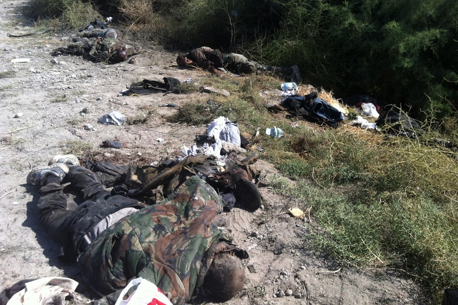 Click to view imageRead moreA photo taken on September 2, 2013 reportedly shows the bodies of rebel fighters lying on the ground following an army ambush in Adra, 36 kilometers northeast of Damascus. "At least 20 rebels, including non-Syrians, were killed in an army ambush" The Syrian Observatory for Human rights said, which relies on a network of activists, doctors and lawyers on the ground. #