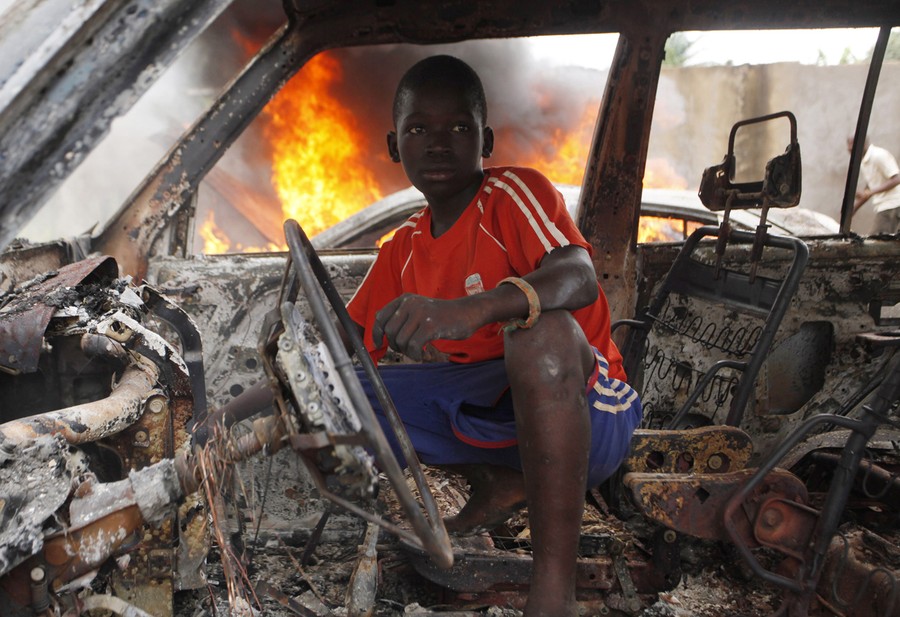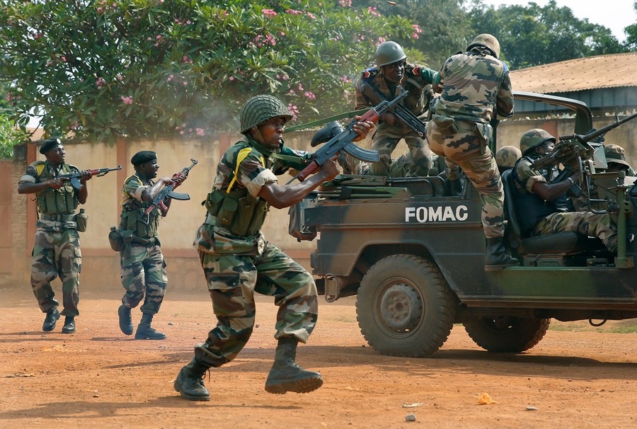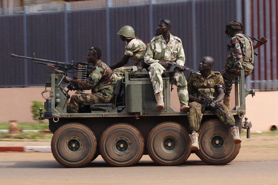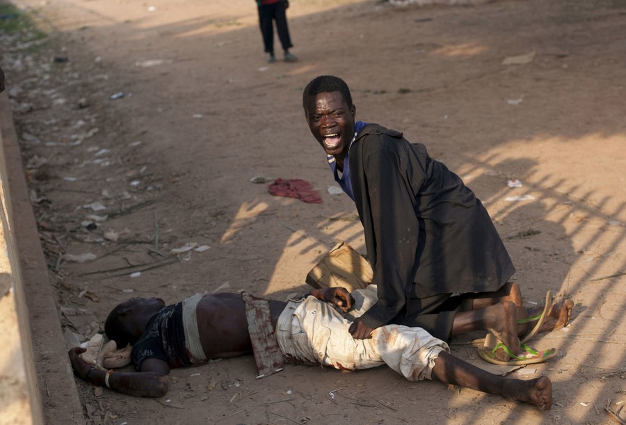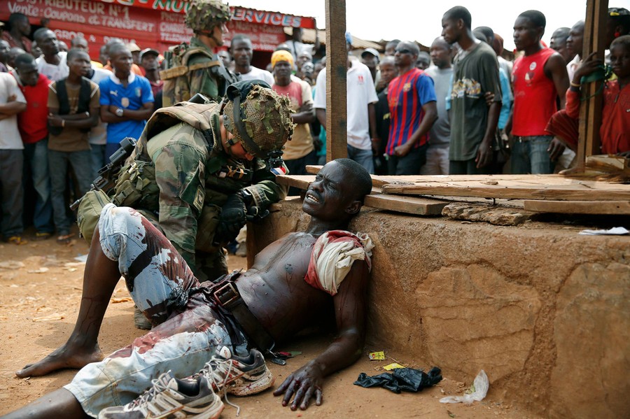 One year ago, an alliance of Muslim rebel groups within Central African Republic (CAR), calling itself Seleka, launched an effort to overthrow the government. The majority of the country's population is Christian, with only 10 to 15 percent identifying as Muslim, but Seleka's campaign was successful. The rebels began by capturing small towns, and by March, they had seized the capital, Bangui. Throughout 2013, members of the Muslim Seleka groups reportedly launched waves of attacks on civilians in Christian areas, looting, raping, and and killing at will. In the past few months, Christian militias have emerged, calling themselves "anti-balaka," or anti-machete. Their actions have gone beyond self-defense, spilling into vicious reprisals against Muslim neighbors and others they view as complicit. More than a thousand people in CAR have been killed in the past month alone. Foreign soldiers form the African Union and France have quickly built up a presence, hoping to fend off a feared genocide.