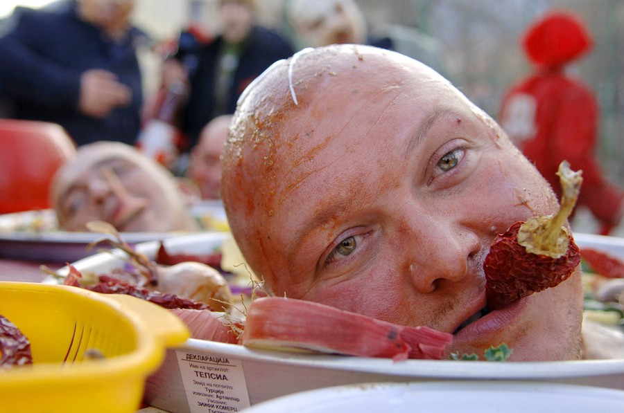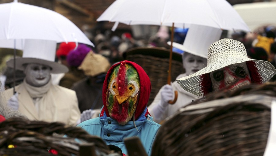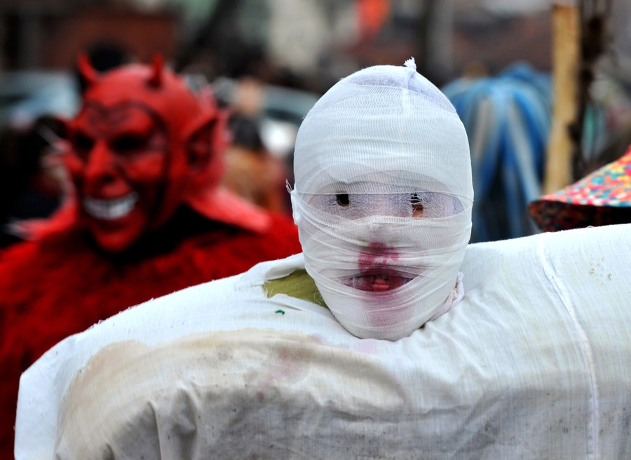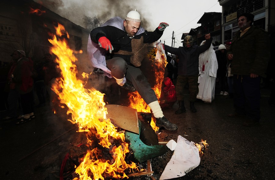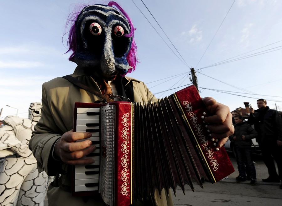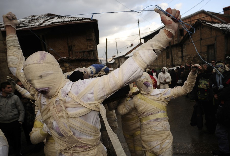 Each year, the Macedonian village of Vevcani marks the Orthodox St. Vasilij Day -- the beginning of the old Julian calendar -- with a 1,400-year-old carnival rooted in pre-Christian traditions. Performers revel in the streets wearing masks that reflect pagan rituals, religious issues, or political satires of current events. Below are some images of the costumes and parades in Vevcani over the past few years.