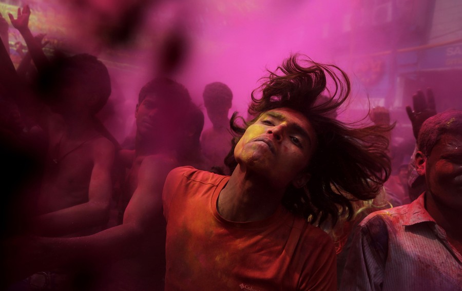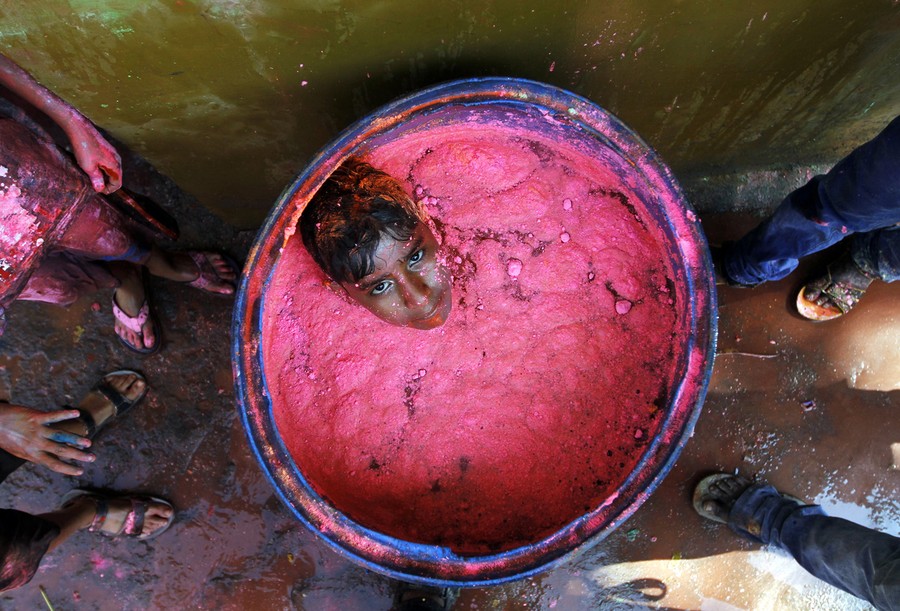 This week Hindus around the world celebrate Holi, the Festival of Colors. Holi is a popular springtime celebration observed on the last full moon of the lunar month. Participants traditionally throw bright, vibrant powders at friends and strangers alike as they celebrate the arrival of spring, commemorate Krishna's pranks, and allow each other a momentary freedom -- a chance to drop their inhibitions and simply play and dance. Gathered here are images of this year's Holi festival from across India. See also India's 'High' Holiday.