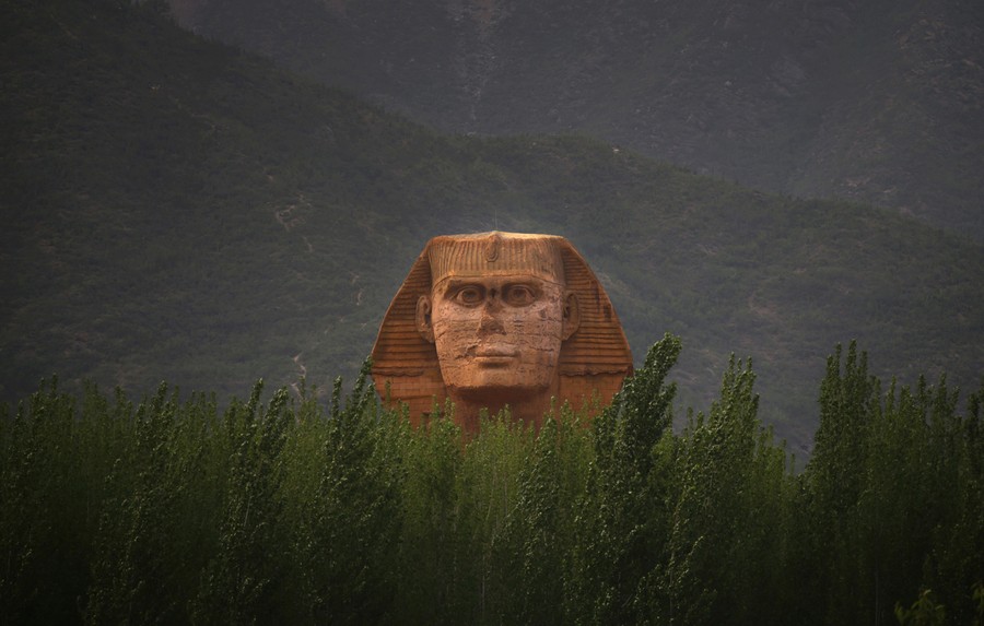Read moreThe head of a full-scale replica of the Sphinx, part of an unfinished theme park that will also accommodate the production of movies, television shows and animation, is seen behind trees on the outskirts of Shijiazhuang, Hebei province, China, on May 15, 2014. #