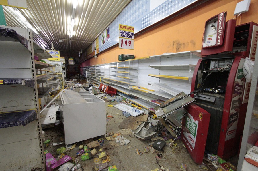 Read moreA view of the interior of a supermarket after it was looted by residents during a police strike in Recife, Brazil, on May 15, 2014. Pernambuco state police called a strike over their demands for better salaries and benefits. #