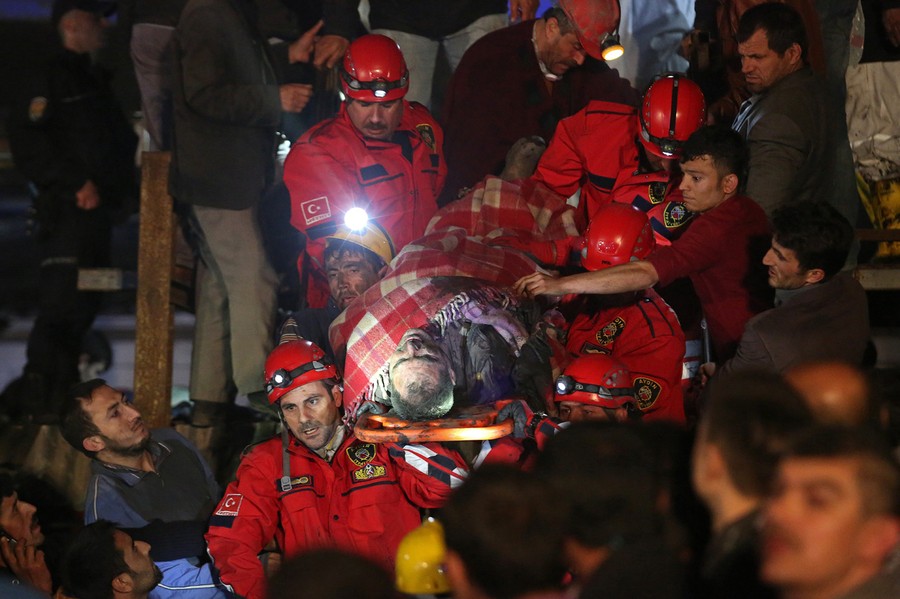 Read moreA miner is carried to an ambulance by rescue workers from the coal mine on May 14, 2014 in Soma, Manisa, Turkey. An explosion and fire in the coal mine killed at least 205 miners and trapped hundreds more. Energy Minister Taner Yildiz said 787 workers had been in the mine when the blast occurred. Turkey declared three days of mourning over the catastrophe. #