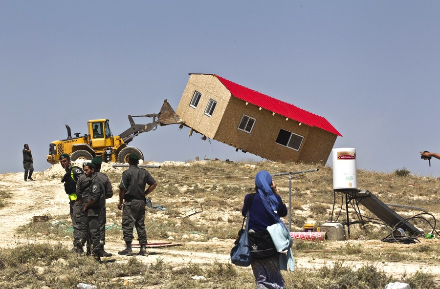 Read moreIsraeli border policemen stand near a bulldozer as it demolishes a temporary structure in the West Bank Jewish settler outpost of Maale Rehavam, near Bethlehem, on May 14, 2014. Seven structures were razed on Wednesday by Israeli border police officers and no injuries or arrests were made during the incidences, a police spokesman said on Wednesday. The structures were demolished as part of Israel's continuing effort to remove settlements built without government authorization. #