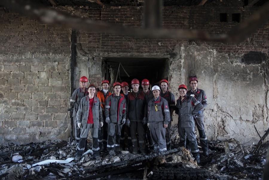 Read moreWorkers of the Ukrainian company Metinvest pose for a photo as they clear away debris in a government building in the eastern Ukrainian city of Mariupol, on May 16, 2014. Local patrols by steelworkers have forced pro-Russia insurgents to retreat from the government buildings they had seized in a major city in eastern Ukraine, giving residents hope that a wave of violence was over. Mariupol is the second-largest city in Ukraine's eastern Donetsk region, one of two regions that declared independence Monday from the central government in Kiev. Citizen patrols began there earlier this week as Rinat Akhmetov, Ukraine's richest man, urged steelworkers at his factories to help police restore order. #