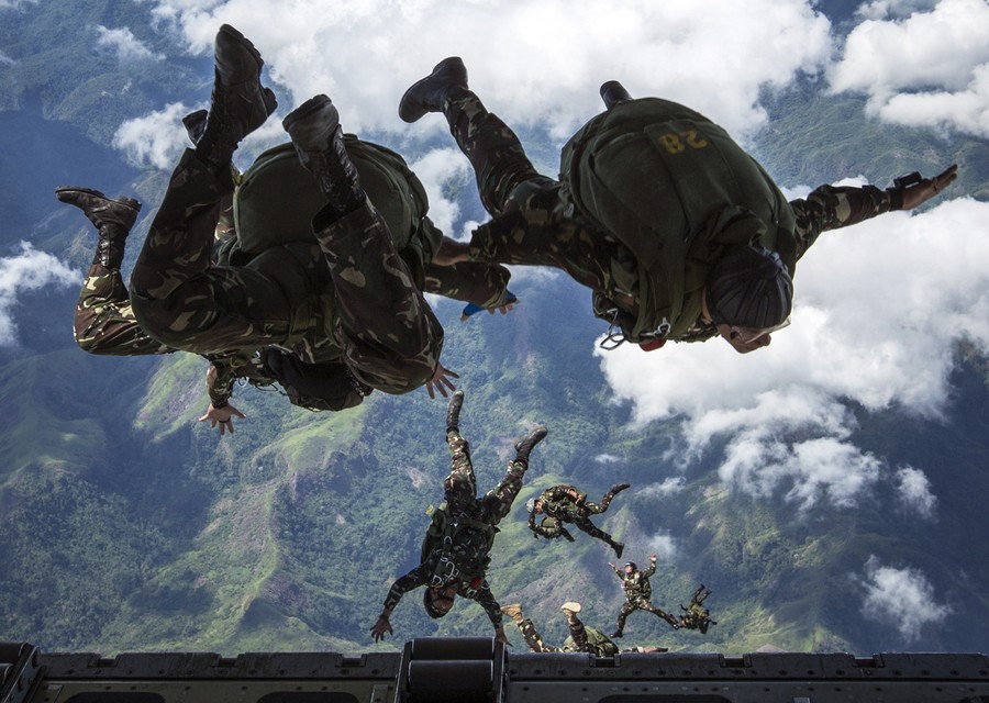 Read morePhilippine Army Special Forces freefall jumpers with Special Operations Command, stationed at Fort Magsaysay jump from a KC-130J "Sumos", during High Altitude Low Opening military freefall jumps -- part of the Combined Arms Live Fire Exercise for Balikatan 2014 at Crow Valley, Philippines, on May 15, 2014. This year marks the 30th iteration of Balikatan, an annual Republic of the Philippines-U.S. military bilateral training exercise. #