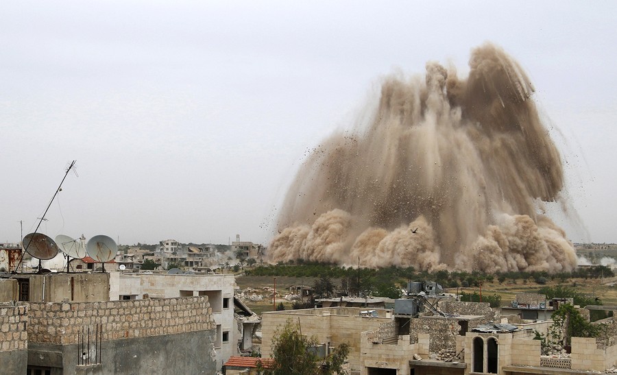 Read moreDebris rises from a massive explosion in what Free Syrian Army fighters and Islamic rebels said was an operation to strike Al-Sahaba checkpoint, considered a gateway to Al-Dayf valley, and remove forces loyal to Syria's President Bashar Al-Assad in Maarat Al-Nouman, Idlib province, Syria, on May 5, 2014. #