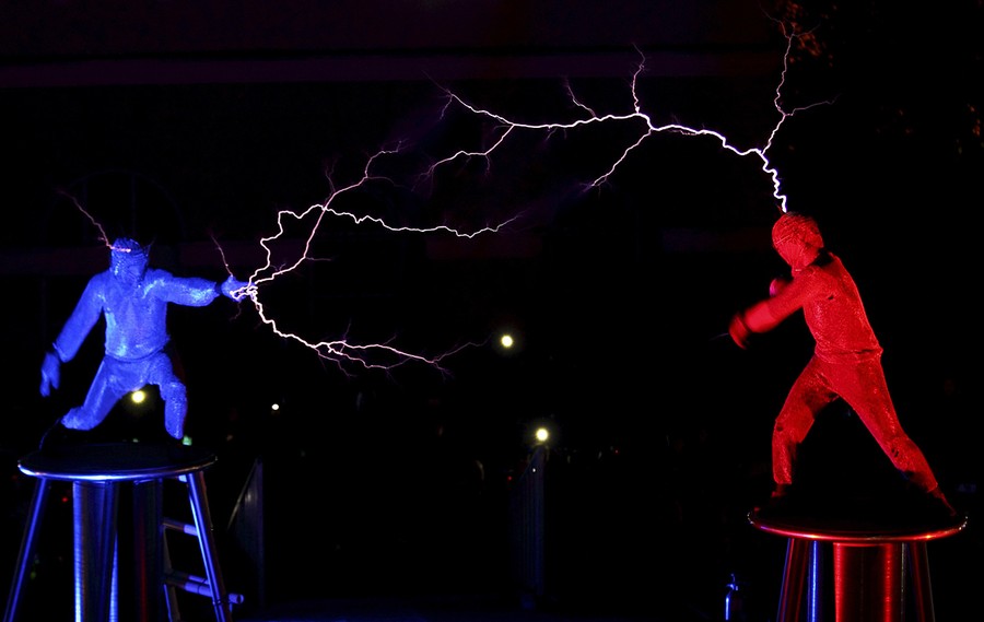 Read moreLords of Lightning perform during the Visualia Festival in the Adriatic town of Pula, Croatia, on May 4, 2014. Visualia Festival 2014 is a festival of audio-visual art with the objective of modernizing and presenting new technologies to citizens. #