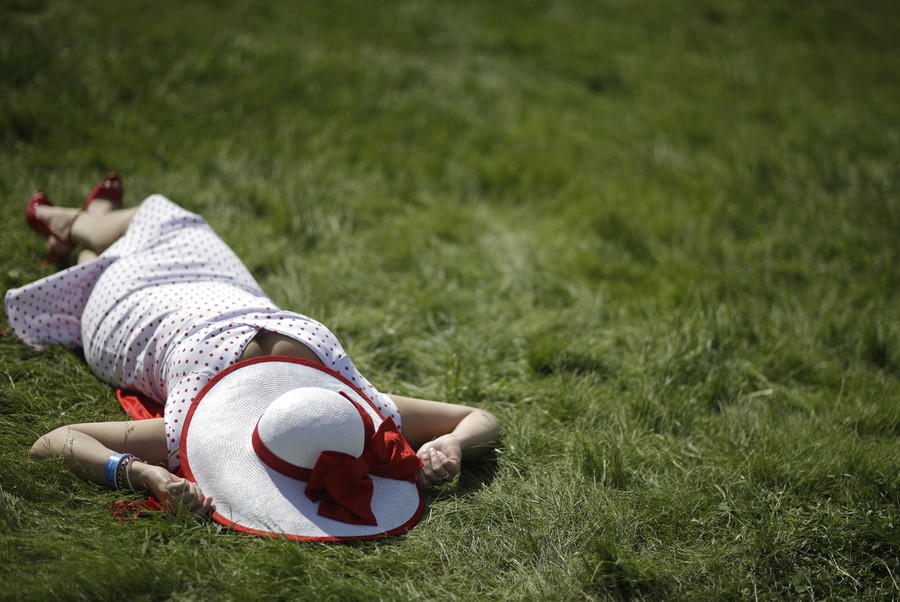 Read moreJaclyn Linde of Madison, Wisconsin, lies in the sun before the 140th running of the Kentucky Derby horse race at Churchill Downs on May 3, 2014, in Louisville, Kentucky, #