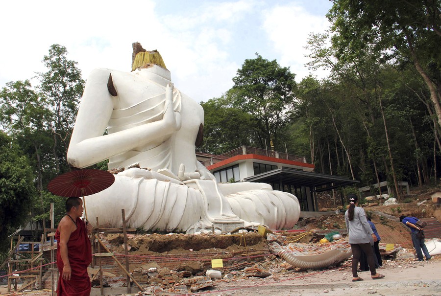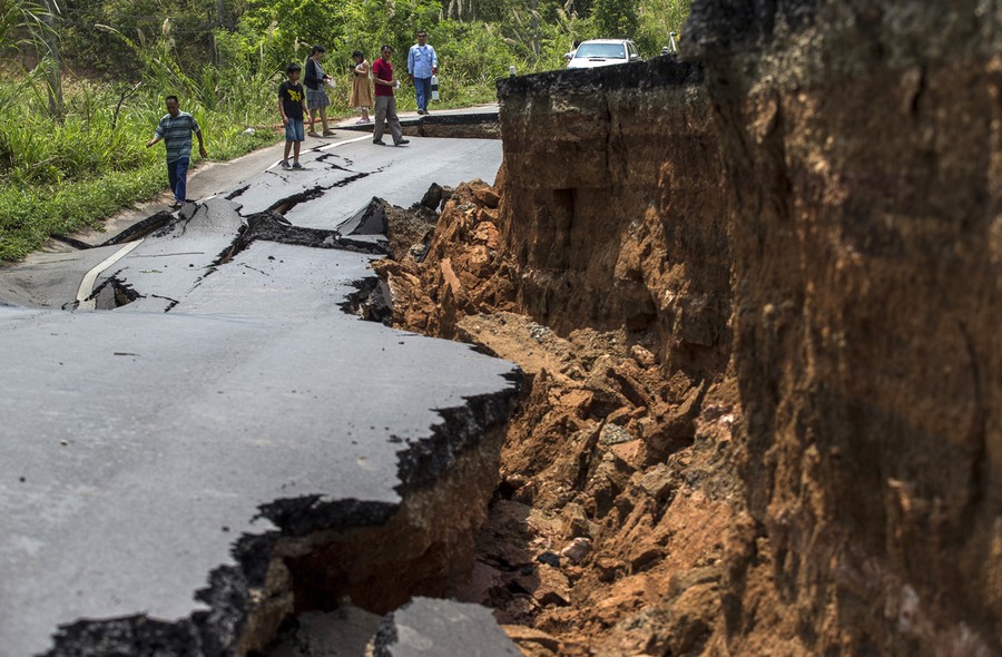 Read morePeople walk on a highway damaged by Monday's earthquake in Chiang Rai, in northern Thailand, on May 6, 2014. Officials said that one person was killed and several dozen were hurt in the magnitude 6 earthquake that struck northern Thailand and Myanmar, smashing windows, cracking walls and roads and damaging Buddhist temples. #