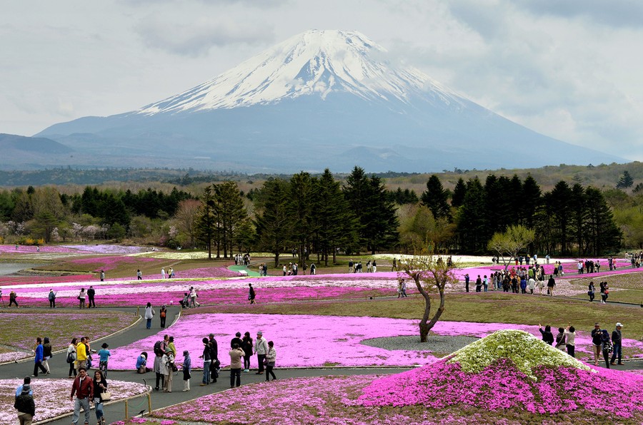 Read moreVisitors stroll in a flower garden covered by over 800,000 Shibazakura, or Moss Phlox, in full bloom during the Fuji Shibazakura Festival at the foot of Mount Fuji in Fujikawaguchiko, Yamanashi prefecture, Japan, on on May 8, 2014. #