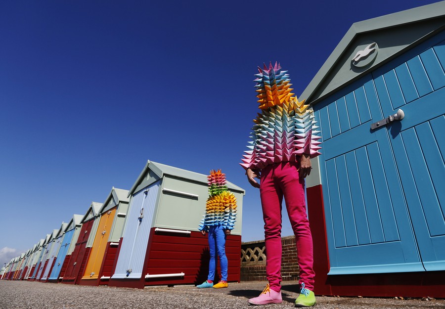 Read moreVenezuelan artist Cristobal Ochoa (right) and his performance partner Jean-Paul Fowler promote the Artist Open Houses part of the Brighton Festival with street art performance "Los conos de madre" ("mother's cones"), on the seafront in Brighton, England, on May 6, 2014. Artists open their homes during the annual Brighton Festival, now in its 48th year, every weekend during May. #
