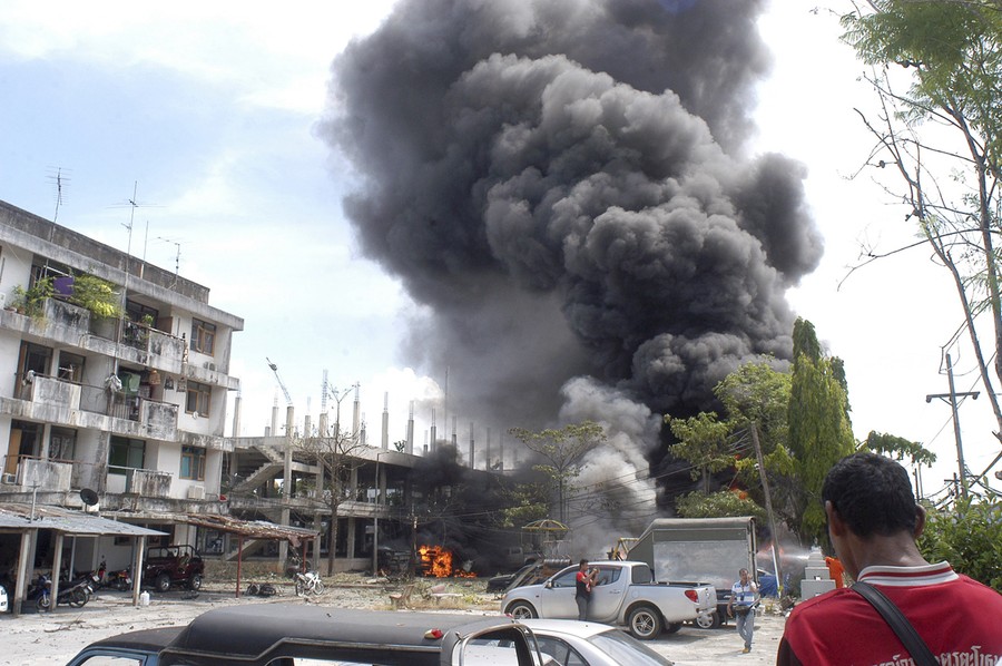 Read moreIn southern Thailand, dense smoke billows from a ground at a police station parking lot after a bomb hidden in a car exploded in Hat Yai district in Songkhla province, on May 6, 2014. Police say bombs have exploded at the police station and a convenience store in Hat Yai, a tourist city in Thailand's violence-plagued south, injuring at least nine people. #